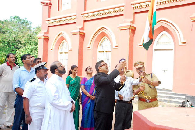 Flag hoisting ceremony by Hon. Justice Alexander Thomas on Independence Day (August 15, 2015). With him Rev. Fr. Felix Chullikal (General Manager), Monica Sabeena Tchr (Principal), Alice Tchr (LP HM),Baby Thadevus Sir (Head Master), NJ Francis Sir (NCC Officer) & Mr. Anil Cleetus (PTA President) and others.